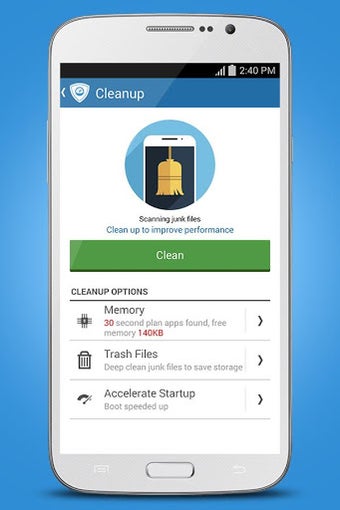 เป็นเรื่องง่ายอย่างเหลือเชื่อที่จะทำให้โทรศัพท์ของคุณมีการปรับปรุงพลิกคว่ำด้วยคุณลักษณะ PSafe Total กับแอปพลิเคชันนี้ แอปพลิเคชันนี้จะล้างข้อมูลข้อมูลไร้ประโยชน์และไฟล์ที่ไม่จำเป็น ของโทรศัพท์ของคุณเพื่อเร่งความเร็วของอุปกรณ์ และให้แอปพลิเคชันอื่นของคุณทำงานได้เร็วขึ้น